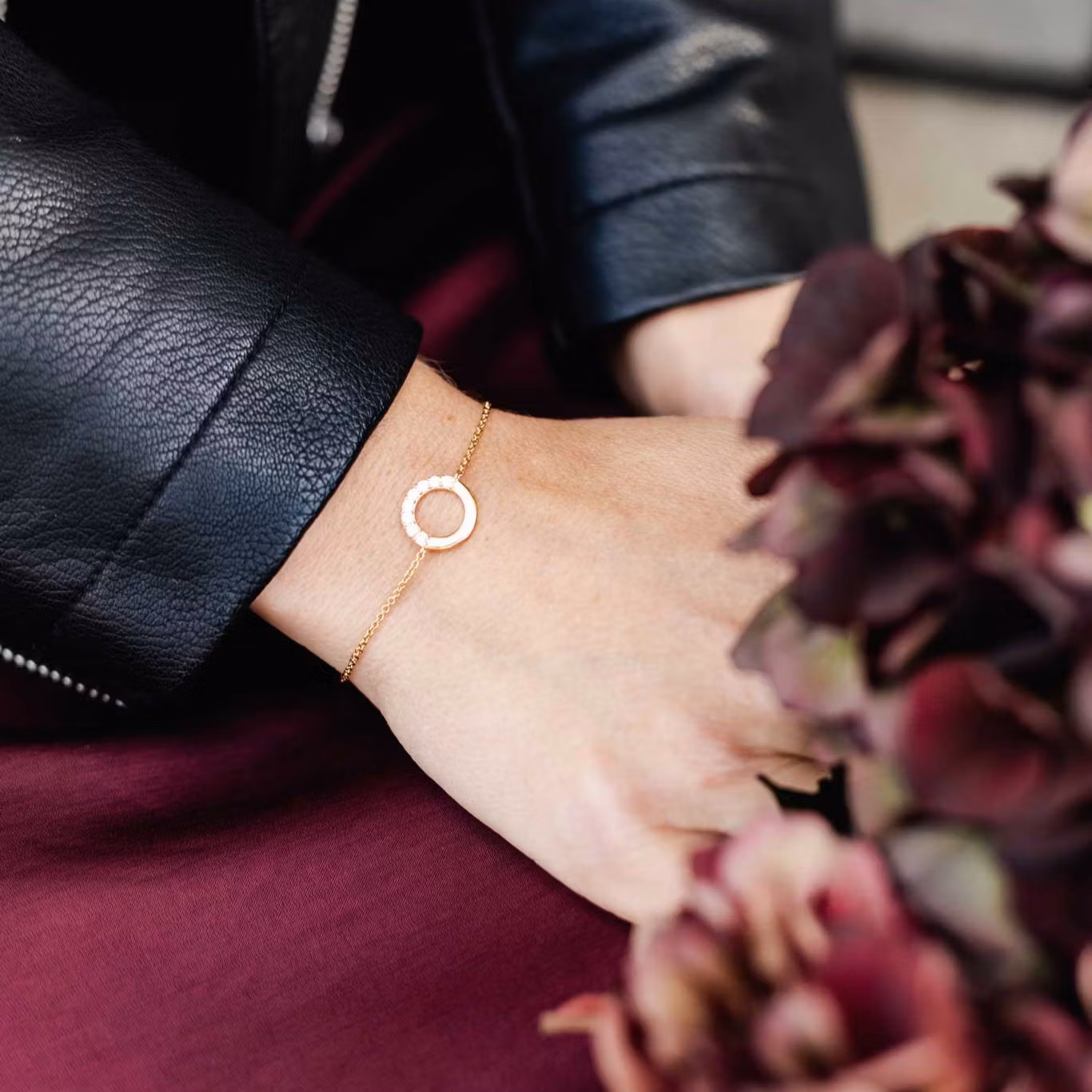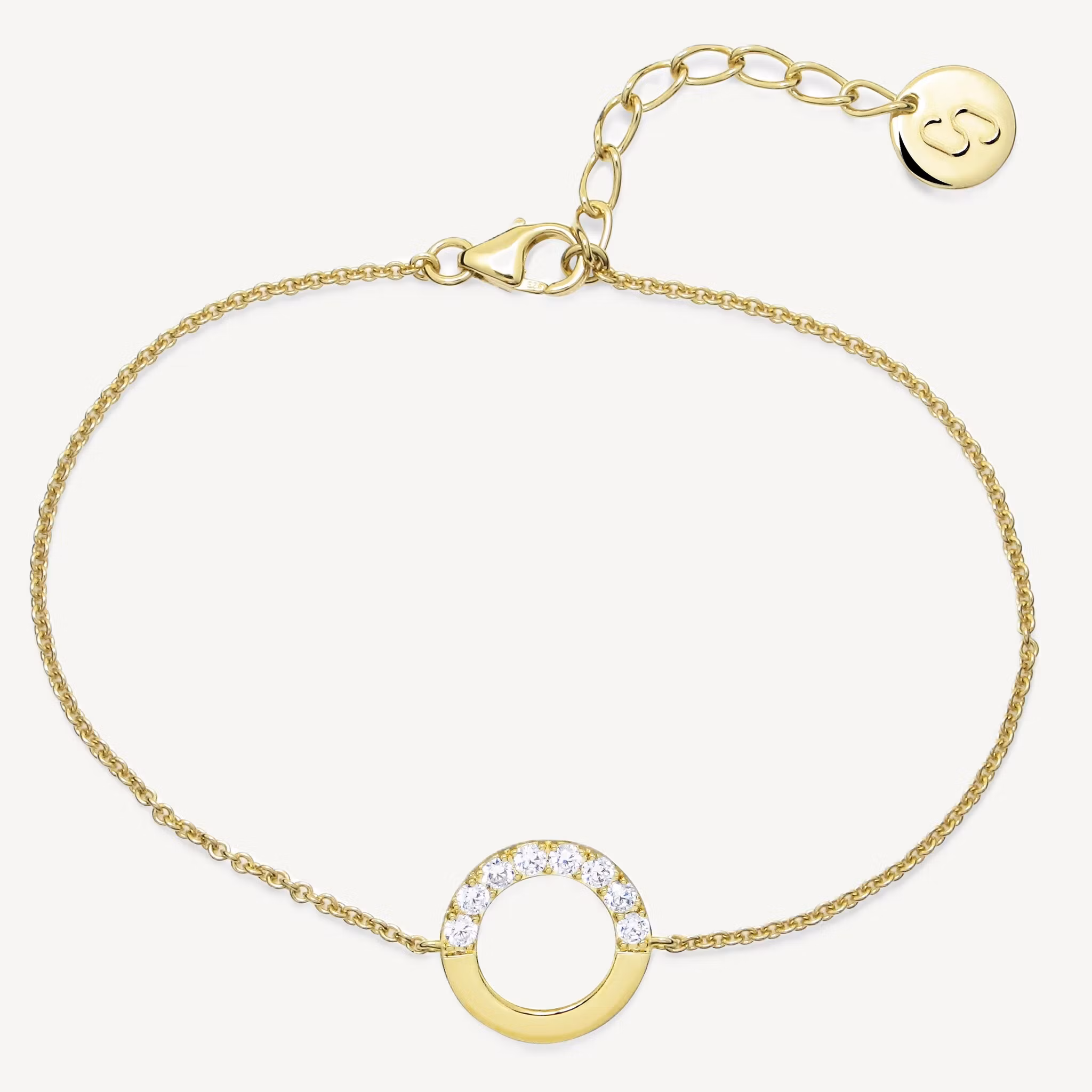 Armband av återvunnet silver med 18K gedigen guldplätering (2 mikron!) för att behålla färgen under lång tid. Gnistrande Cubic Zirconia-stenar. Justerbar kvalitetskedja. Levereras i en fin FSC-märkt smyckesask.