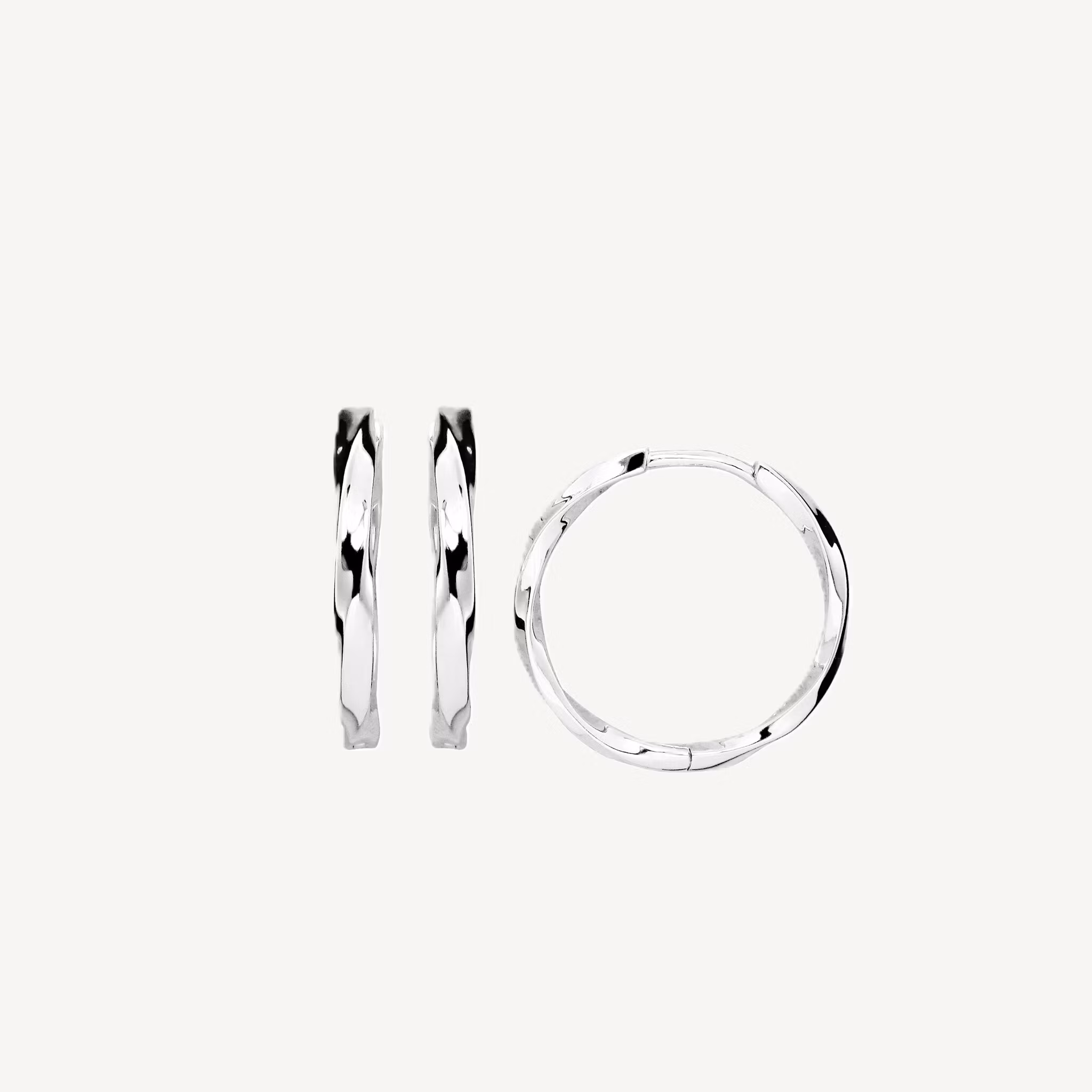 Zoe - Liv. Örhängen av fyrkantsprofil med lätt twist som skapar liv och reflektion. Hoops som passar alla tillfällen. Premiumkvalité och återvunnet silver.