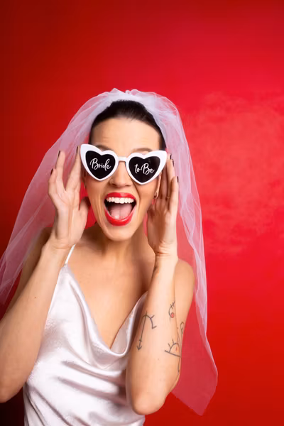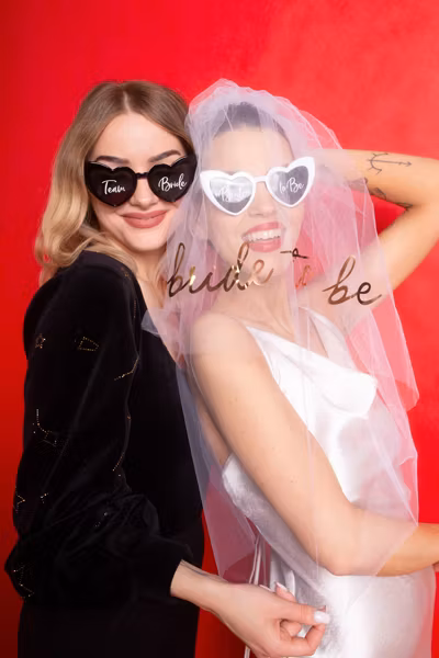 Roligaste detaljen på möhippan! Vita hjärtformade glasögon med texten "Bride to Be". Komplettera med matchande glasögon till tjejgänget.