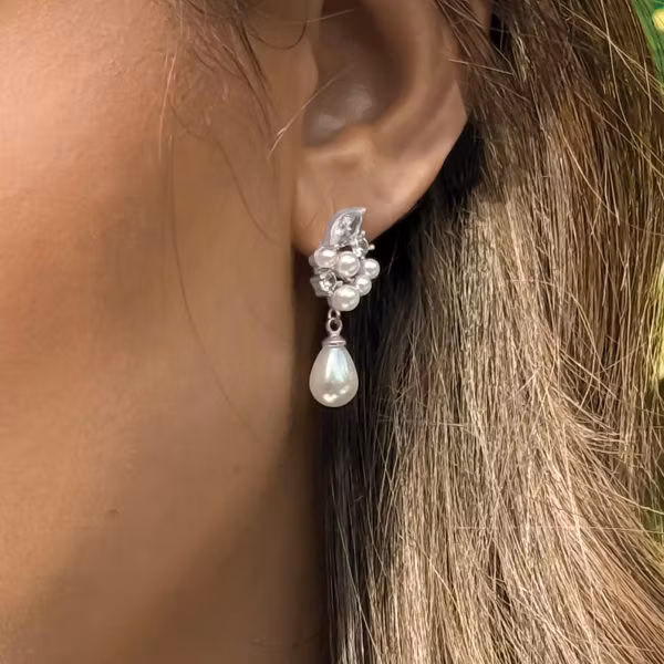 Vintageinspirerande örhängen med kristaller och pärlor för en klassisk och elegant brudlook.