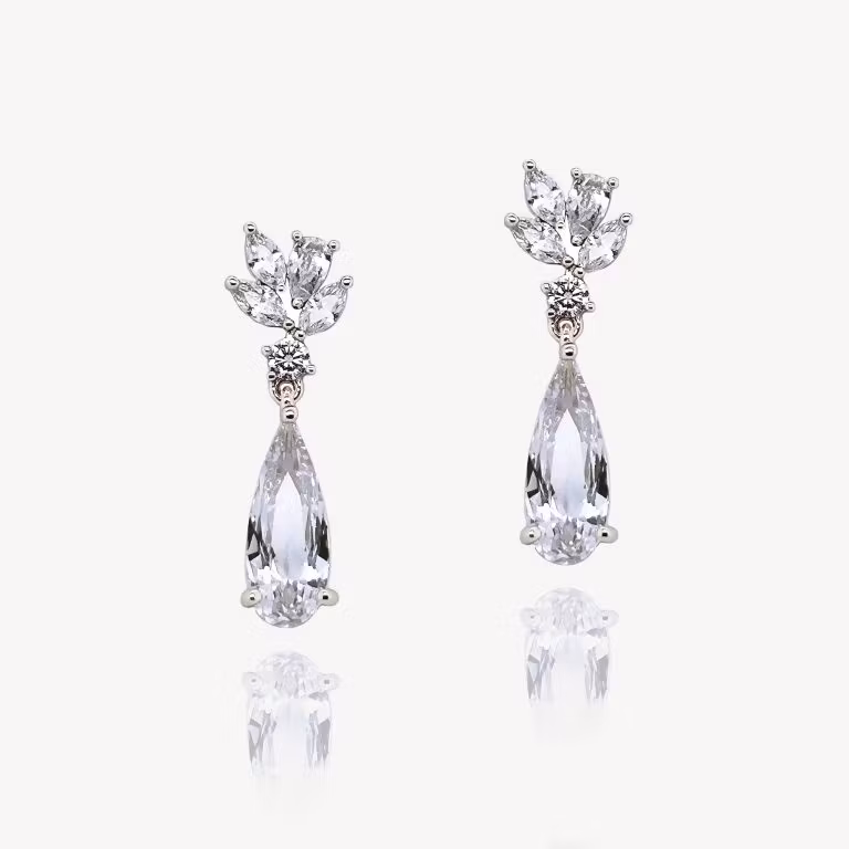 Örhängen i mässing med rodiumplätering (tillhör platinafamiljen) för högre skydd mot oxidation. Fasettslipade Zirkoniumoxidkristaller (trippel A-klassade). Levereras i en lyxig smyckesask.