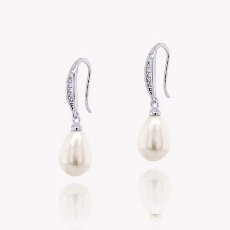 Örhängen Salford Crystal Pearl Drop rodium
