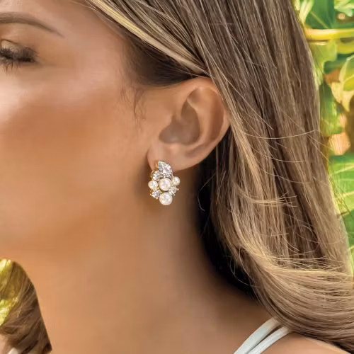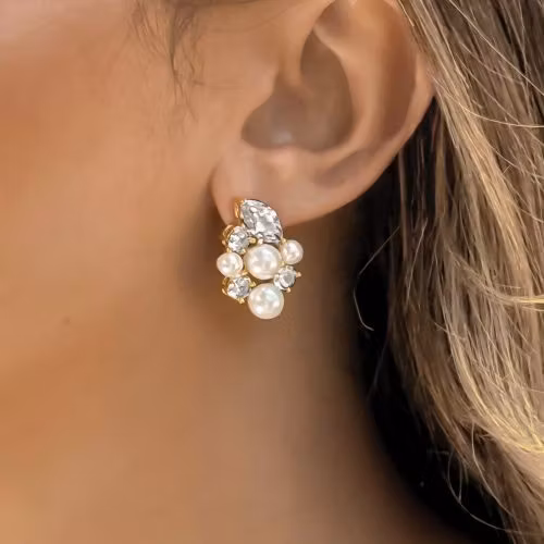 Kristaller och pärlor sammansatta i en vacker design gör dessa örhängen till en dröm att bära till både bröllop och fest.