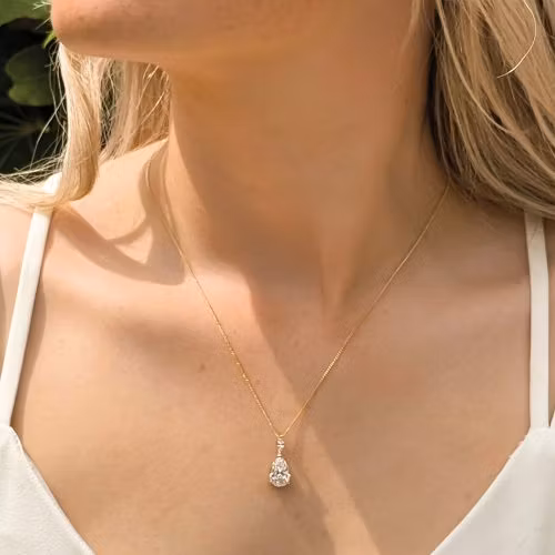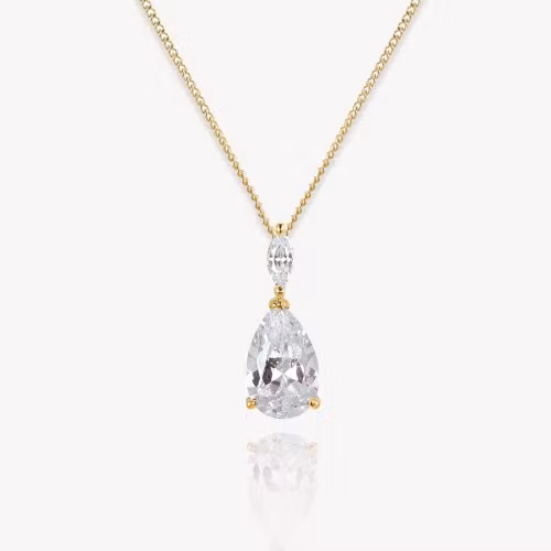Mångsidigt och vackert halsband med klassiskt teardrop-hänge. Passar både till brud, tärna eller för balen. Kombinera med matchande örhängen.