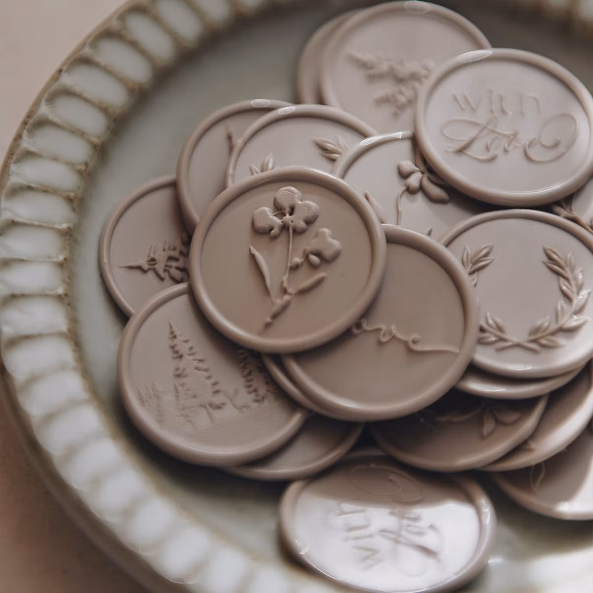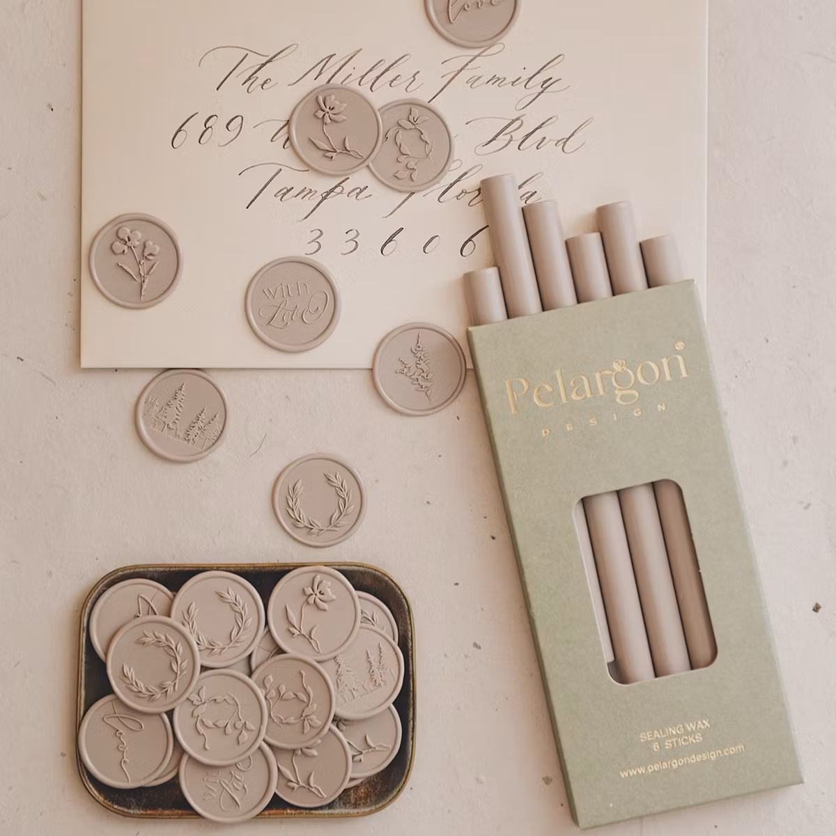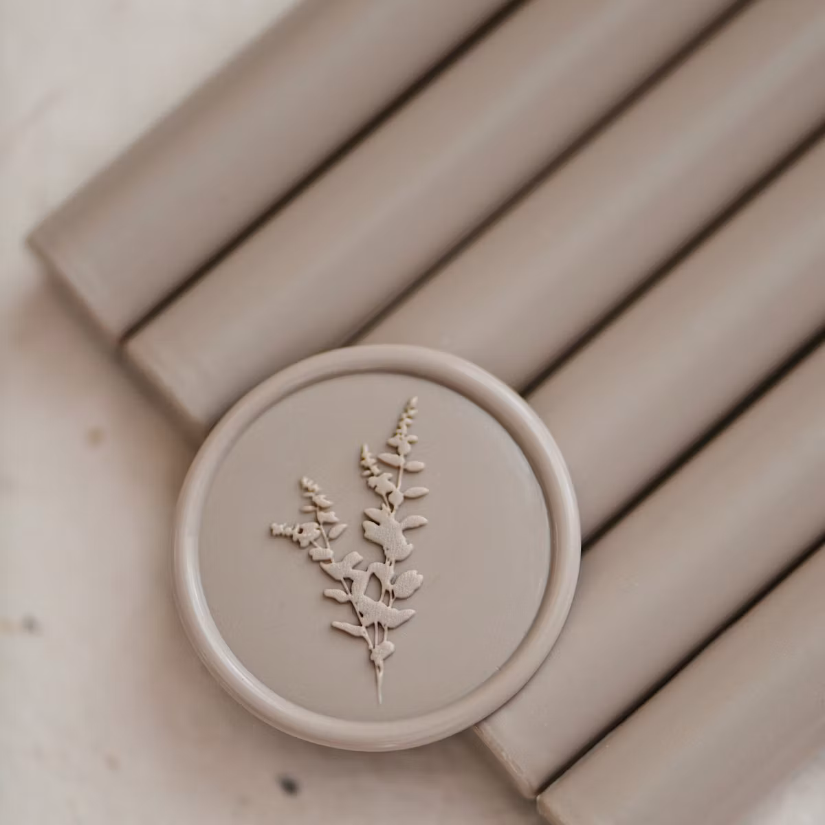Tätningsvax för tillverkning av vaxsigill. Varje förpackning räcker till ca 80-95 vaxsigill. Färg Cacao taupe i en mild beigebrun nyans.