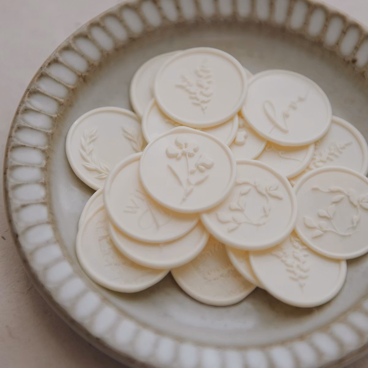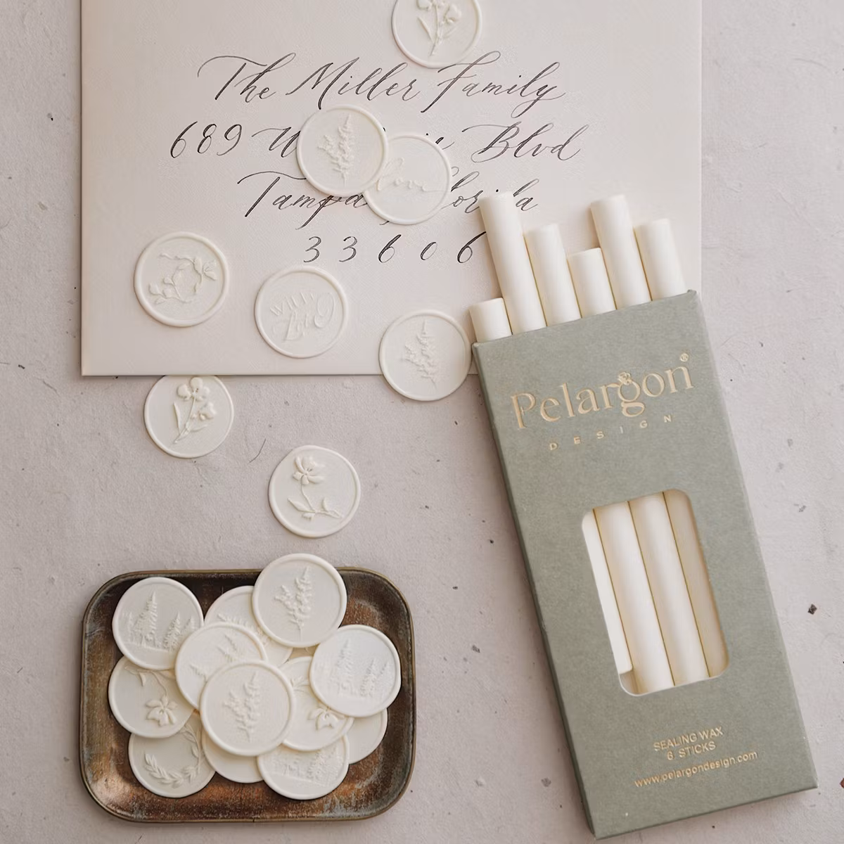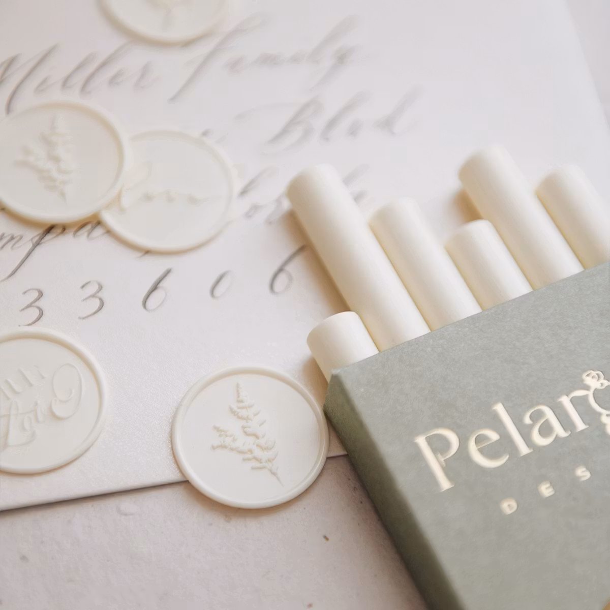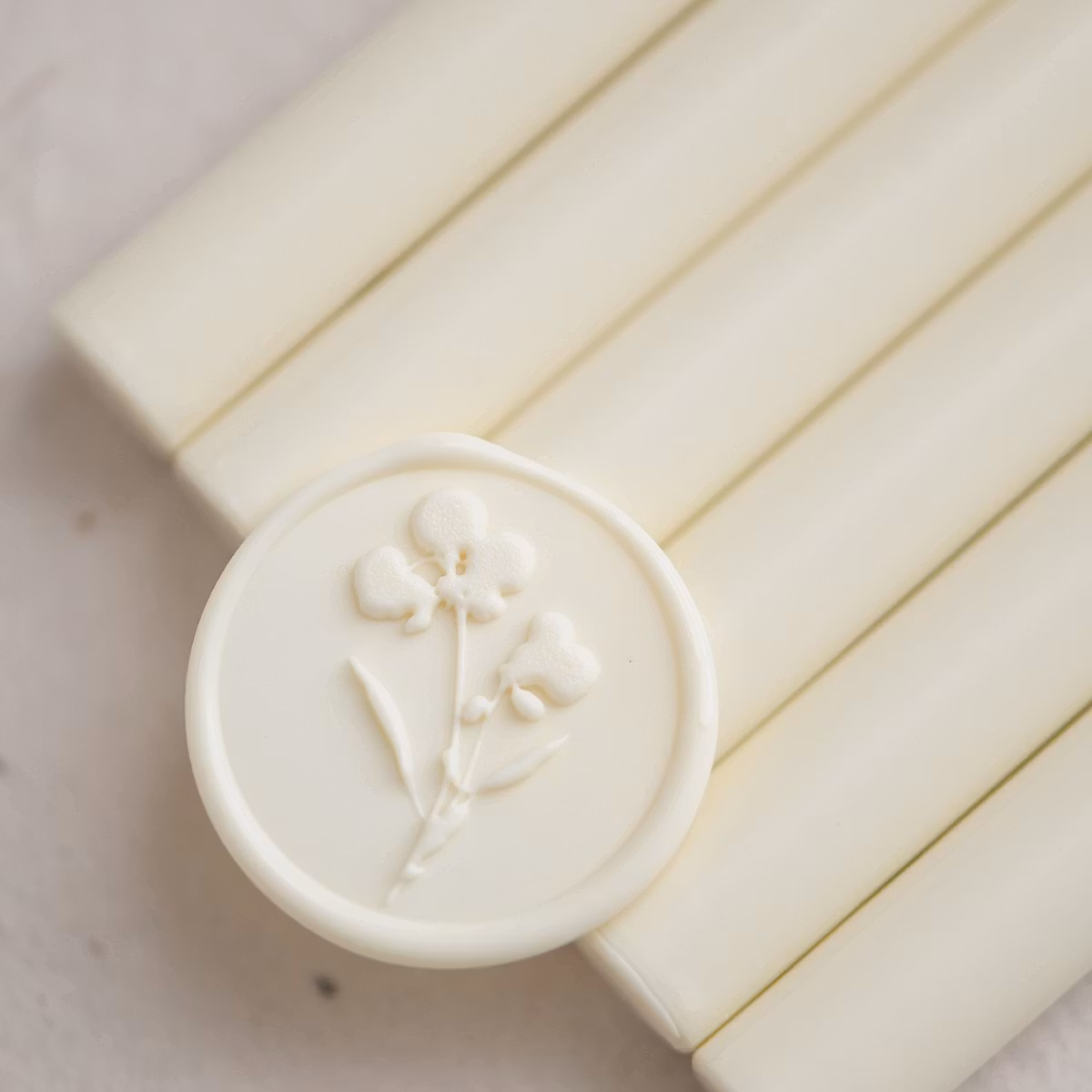 Tätningsvax för tillverkning av vaxsigill. Varje förpackning räcker till ca 80-95 vaxsigill. Färg Cream white i en mjuk vaniljvit nyans.