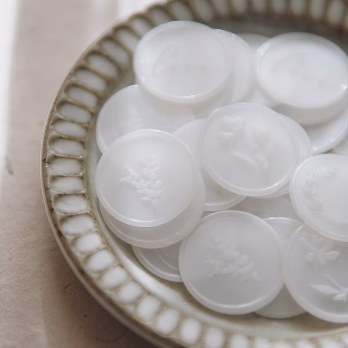 Tätningsvax för tillverkning av vaxsigill. Varje förpackning räcker till ca 80-95 vaxsigill. Färg Vellum som ger en semi-transparent effekt.