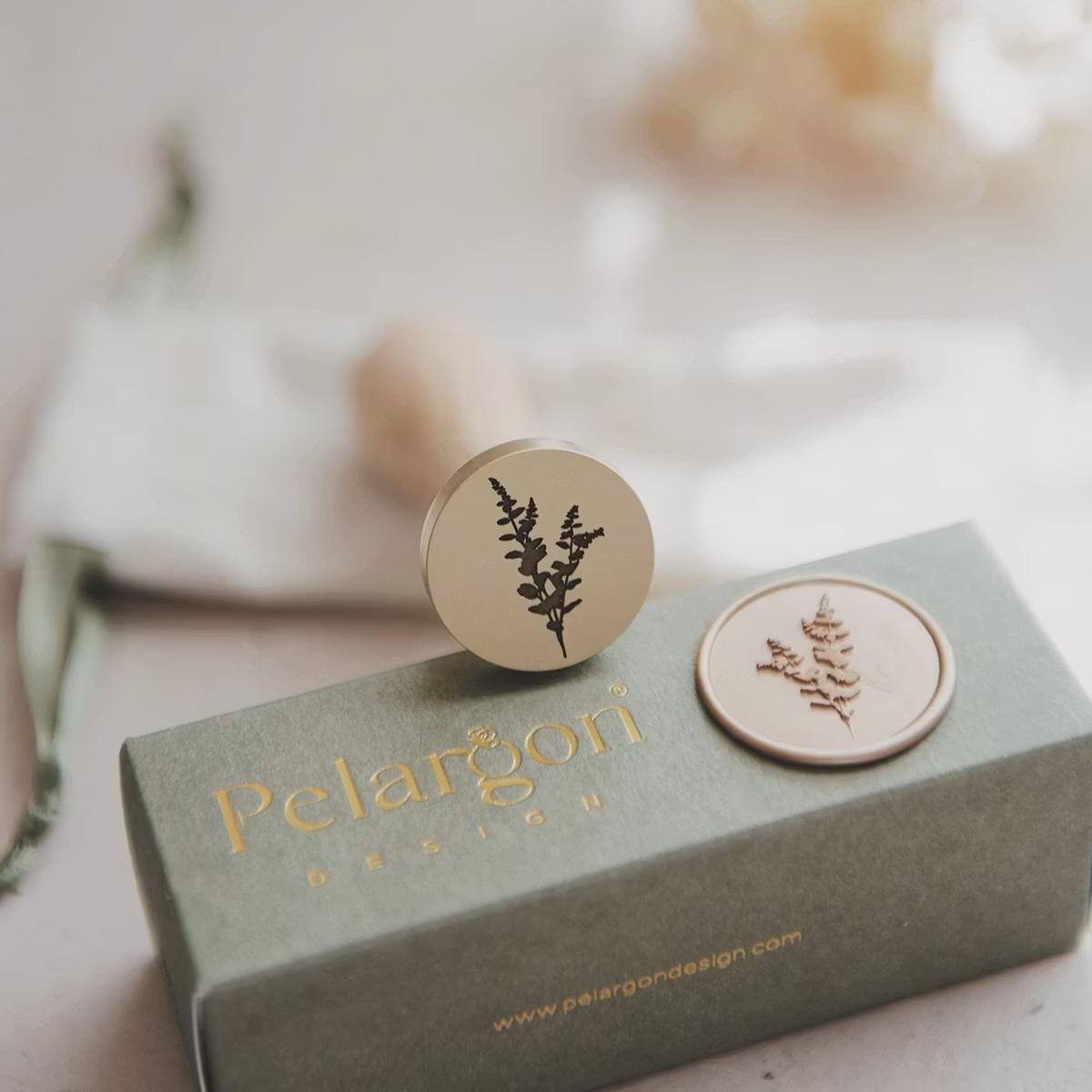 Sigillstämpel för vax i premiumkvalité från svenska Pelargon Design. Mässingshuvud med gjup 3D-gravyr. Handtag i FSC-certifierat björkträ. Stämpel kommer i en elegant sammetspåse för skydd och förvaring. Se vår guide hur du skapar egna vaxsigill med eller utan limpistol.