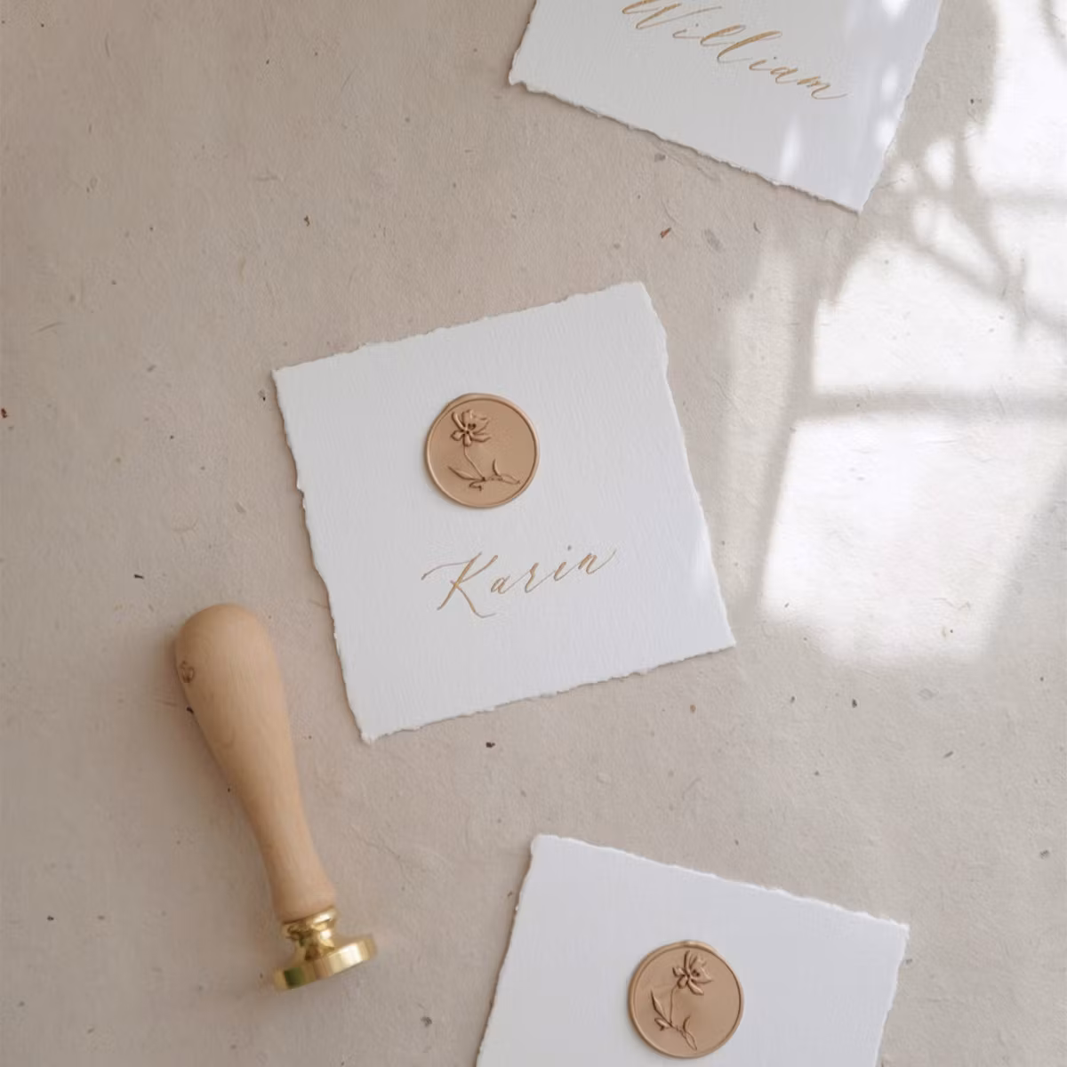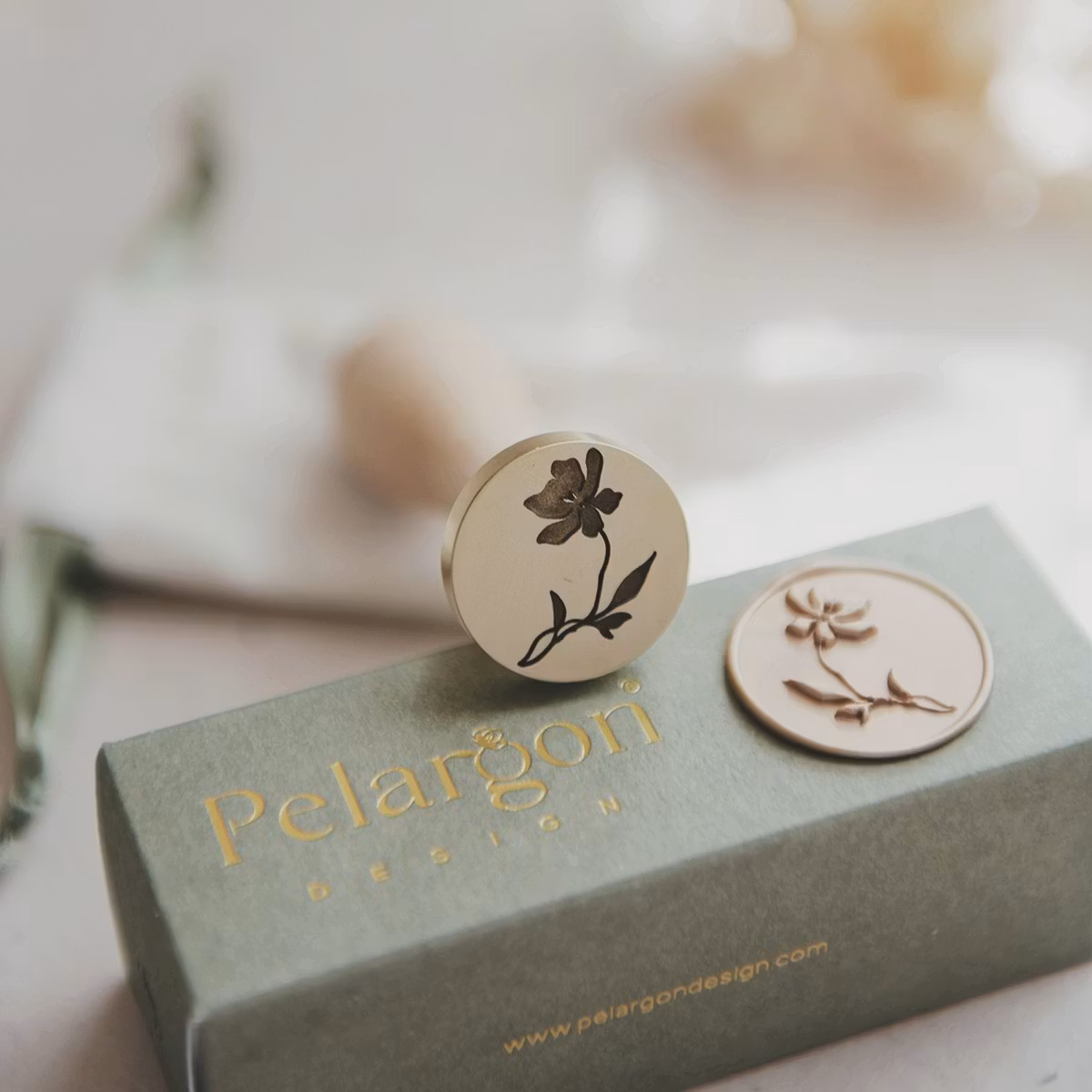 Sigillstämpel för vax i premiumkvalité från svenska Pelargon Design. Mässingshuvud med gjup 3D-gravyr. Handtag i FSC-certifierat björkträ. Stämpel kommer i en elegant sammetspåse för skydd och förvaring. Se vår guide hur du skapar egna vaxsigill med eller utan limpistol.
