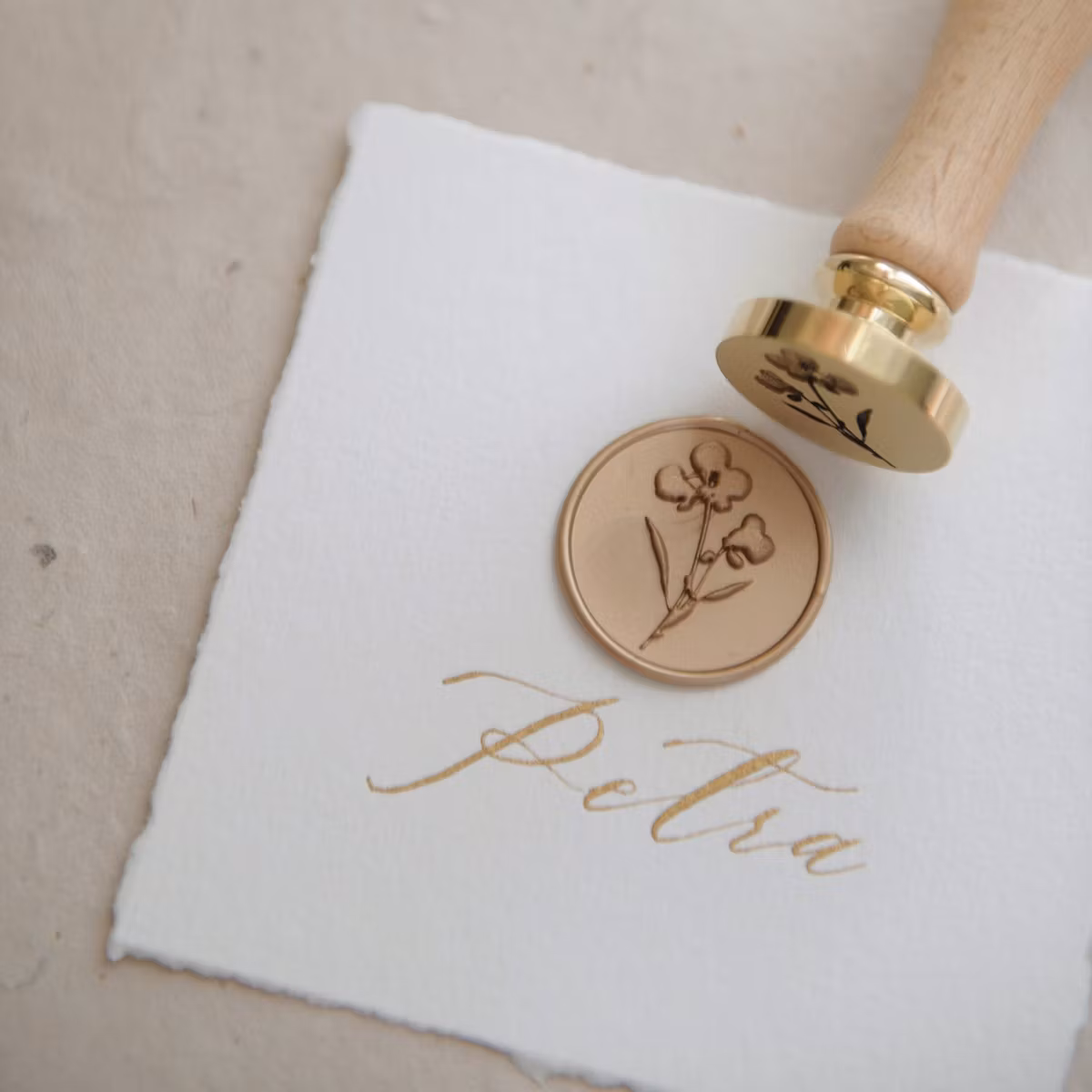 Sigillstämpel för vax i premiumkvalité från svenska Pelargon Design. Mässingshuvud med gjup 3D-gravyr. Handtag i FSC-certifierat björkträ. Stämpel kommer i en elegant sammetspåse för skydd och förvaring. Se vår guide hur du skapar egna vaxsigill med eller utan limpistol.